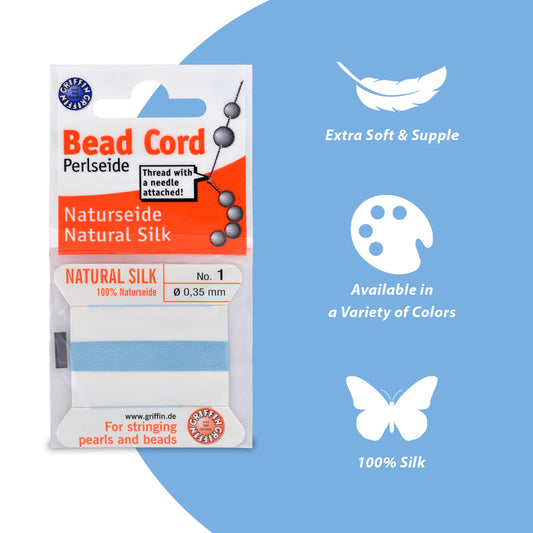 Beadalon Silk Thread, Size #6, 0.70 mm / .028 in, Grey, with needle, 2 m / 6.5 ft