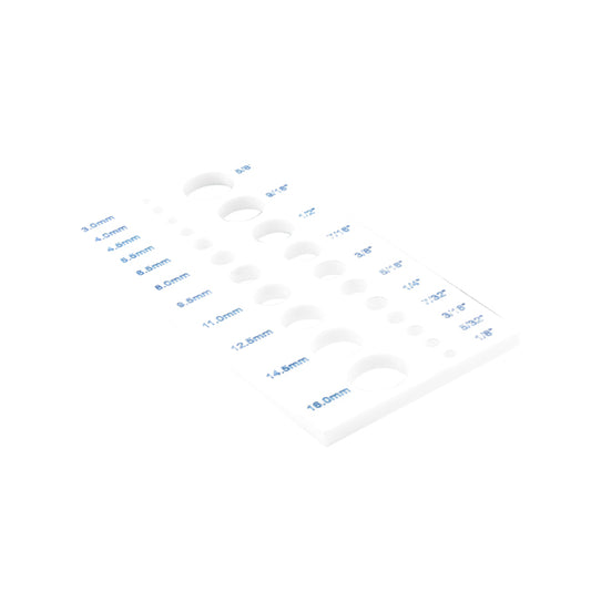 Artistic Wire Acrylic Draw Plate 22 Holes, Diameters: / 16, 14.5, 12.5, 11, 9.5, 8, 6.5, 5.5, 4.5, 4,3 mm - 5/8, 9/16, 1/2, 7/16, 3/8, 5/16, 1/4, 7 in