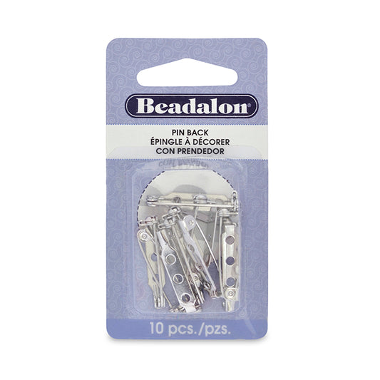 Pin Back, 1 in, 25 mm / Rhodium Plated, 10 pc