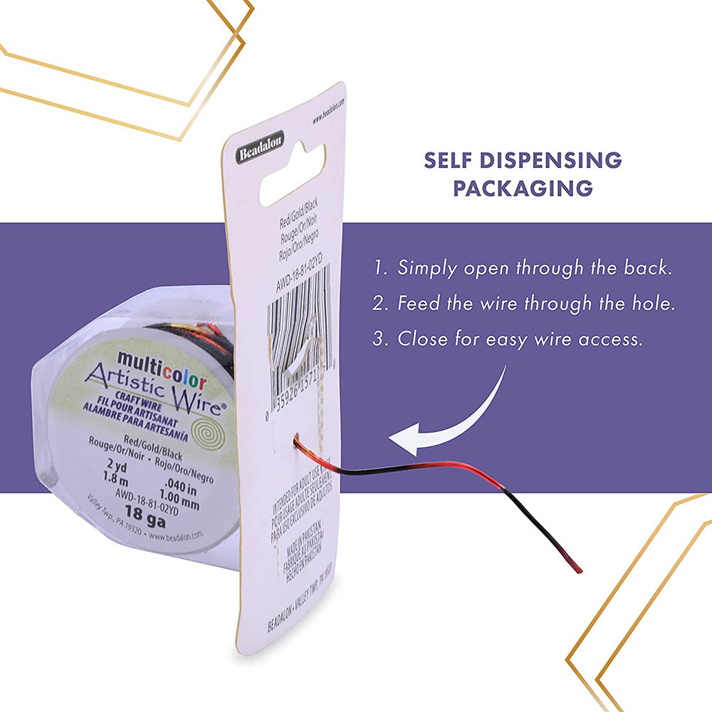 Artistic Wire, 20 Gauge / .81 mm Tarnish Resistant Colored Copper Craft Wire, Multicolor Blue, Red, Gold, 4 yd / 3.6 m